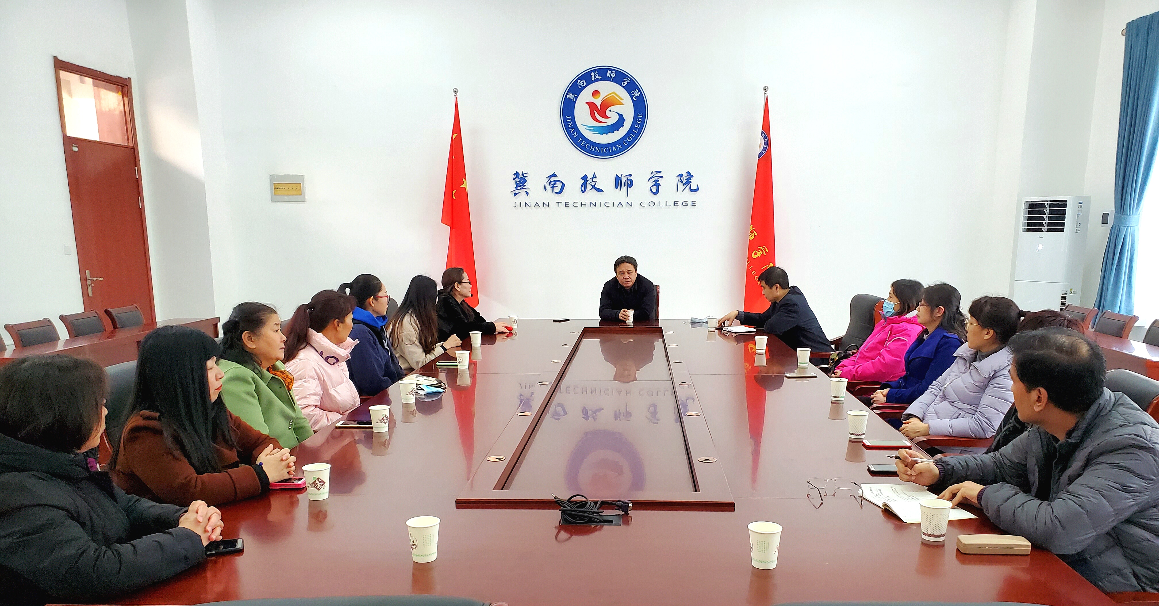 在“三八”国际妇女节来临之际,冀南技师学院公共基础部在2021年3月8日中午开展“喜庆建党百年,关爱一线巾帼”茶话会,学院党委书记许克亮莅临基础部慰问女教师,许书记代表院党委和学院领导班子,向广大女教师致以节日的问候并亲切座谈,并为女教师颁发了节日纪念品,整个座谈会气氛和谐热烈。