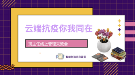 智能制造系2021级数控一班班主任宋雷英老师以《云端抗疫 你我同在》为题,从班主任与学生本人、班主任与任课老师、班主任与学生家长、班主任与共管团队4个方面作分享。“责任心、讲方法、提效率”是宋老师在分享中频繁提到的关键词。