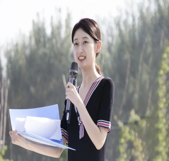 班主任代表李晶晶发言,希望同学们可以顺利完成军训任务,在未来人生道路上勇往直前,成为大国工匠。