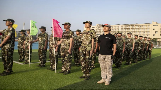 总教官韩群组织同学们齐唱营歌《团结就是力量》,铿锵有力的歌声回荡在校园的每一个角落,唱出了同学们的朝气蓬勃和拳拳报国之心。