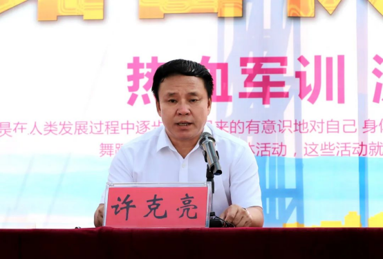 许克亮书记发表重要讲话,向参加军训的全体教官和随训教师表示亲切的慰问和感谢,向圆满完成军训任务的全体同学致以祝贺。对参会全体学生提出谆谆教诲: