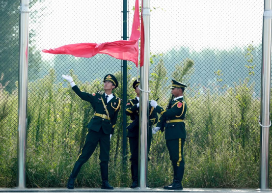 国旗护卫队队员们迈着矫健的步伐缓缓入场,鲜艳的红旗被高高擎起,随风飘扬,仪式在激昂的国歌声中拉开序幕。