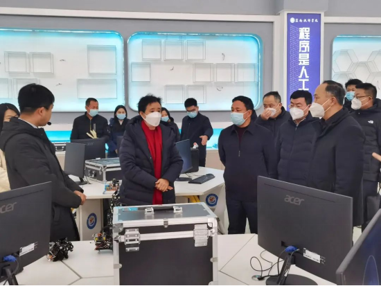 调研组先后实地考察了数控综合加工实训室、数控加工中心实训室、人工智能实训室,深入考察了我院人工智能应用技术和数控加工专业两个国家级高技能人才培养基地的实训场所与实训设备。赵爱平详细询问了我院专业开设、培训规模和社会效益情况,许克亮就相关问题一一解答。