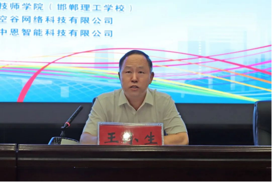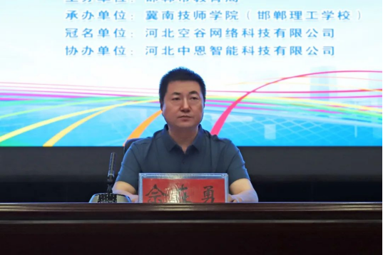 邯郸市教育局高职处处长佘在勇,副处长刘剑利莅临开幕式现场,我院院长王小生,副院长封国俐、王振峰出席开幕式。河北空谷网络科技有限公司副总经理王常帅、河北中恩智能科技有限公司董事长杨坤作为企业代表到场参加,大赛开幕式由我院副院长封国俐主持。
