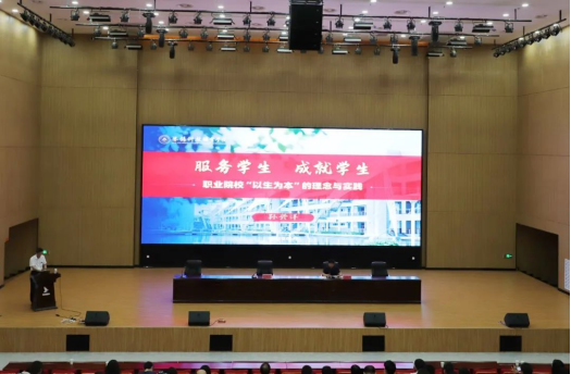 孙兴洋院长讲解了新形势下的优秀教师要坚持“服务学生、成就学生”的教育理念,指出要以学生为中心,为其搭建爱国荣校、工匠技艺、文化涵养等学习平台,对其进行“政治指导、心理疏导、学习辅导、生活启导、就业引导”,让学生成为“心中有爱、眼中有人、肚中有货、手中有艺”的德技并修的全面型发展人才。