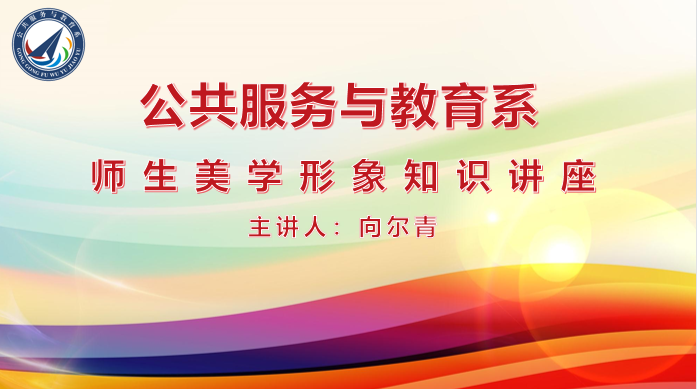 为深入开展学习贯彻习近平新时代中国特色社会主义思想主题教育,切实把主题教育的成效转化为为民办实事的具体行动,11月13日,学院公共服务与教育系结合专业特色,特邀知名培训师向尔青老师做《师生美学形象知识》专题讲座。本次讲座由公共服务与教育系负责人李飞主持,学院公共服务与教育系全体师生参与讲座。