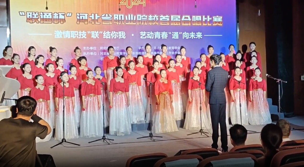 歌声婉转悠扬,表演优美和谐。6月20日,在河北省职业院校首届合唱比赛中,学院合唱团凭借《红莓花儿开》和《唱支山歌给党听》两首歌曲的精彩演绎,赢得专家评委和现场观众的高度好评,斩获中职组二等奖和优秀组织奖!