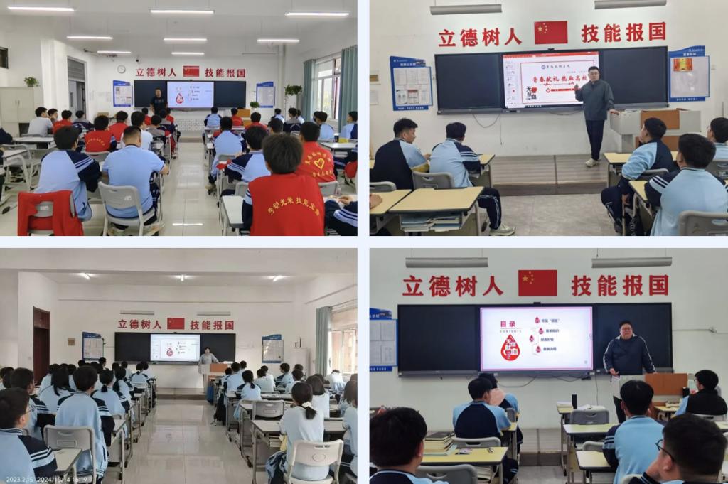 10月14日,各系部纷纷开展了丰富多彩的献血主题班会,讲解省市关于开展无偿献血的文件精神和血液相关的生理知识,让学生们了解献血的基本常识,消除对献血行为认知的误区,鼓励学生们做无偿献血的宣传者、参与者、践行者。