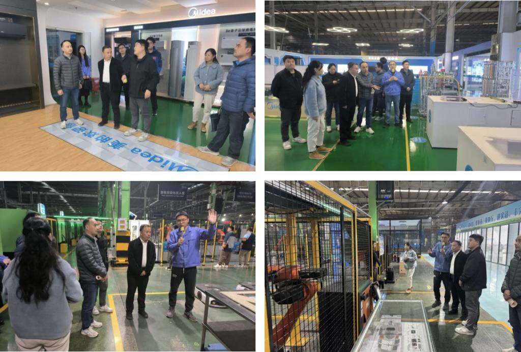 在企业领导的陪同下,许克亮书记一行参观了邯郸美的制冷设备有限公司,先后前往产品展厅、总装分厂、钣金车间、注塑车间以及培训道场。在企业精益道场,看到多种电气自动化和工业机器人的培训设备和培训场景,感受到专业知识和技能在企业的真实应用。