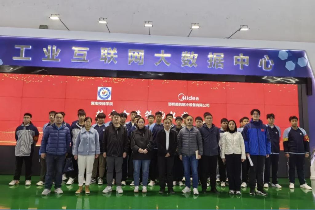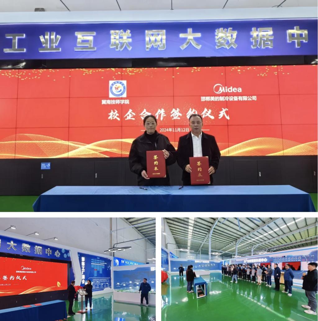 11月12日,冀南技师学院党委书记许克亮带队,与招生就业科、教务科、智能控制工程系等负责人员一同前往邯郸美的工业园区参观交流,并与邯郸美的制冷设备有限公司举行校企合作签约揭牌仪式。