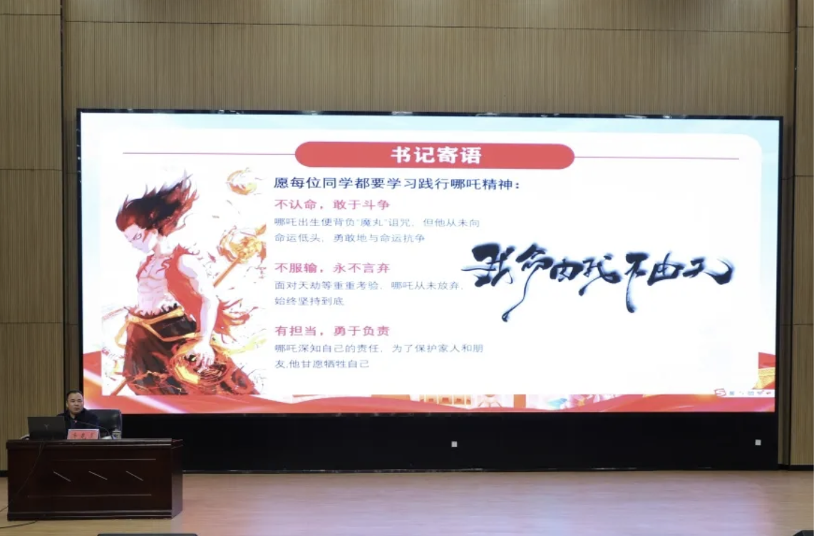 最后,许书记以电影《哪吒之魔童降世》中最震撼人心的台词“我命由我不由天”鼓励学生们勇于突破、敢于担当;以古诗“春种一粒粟,秋收万颗子”祝愿学生们在新的一年学有所成,技有所长!老师们凝心聚力,再创佳绩!