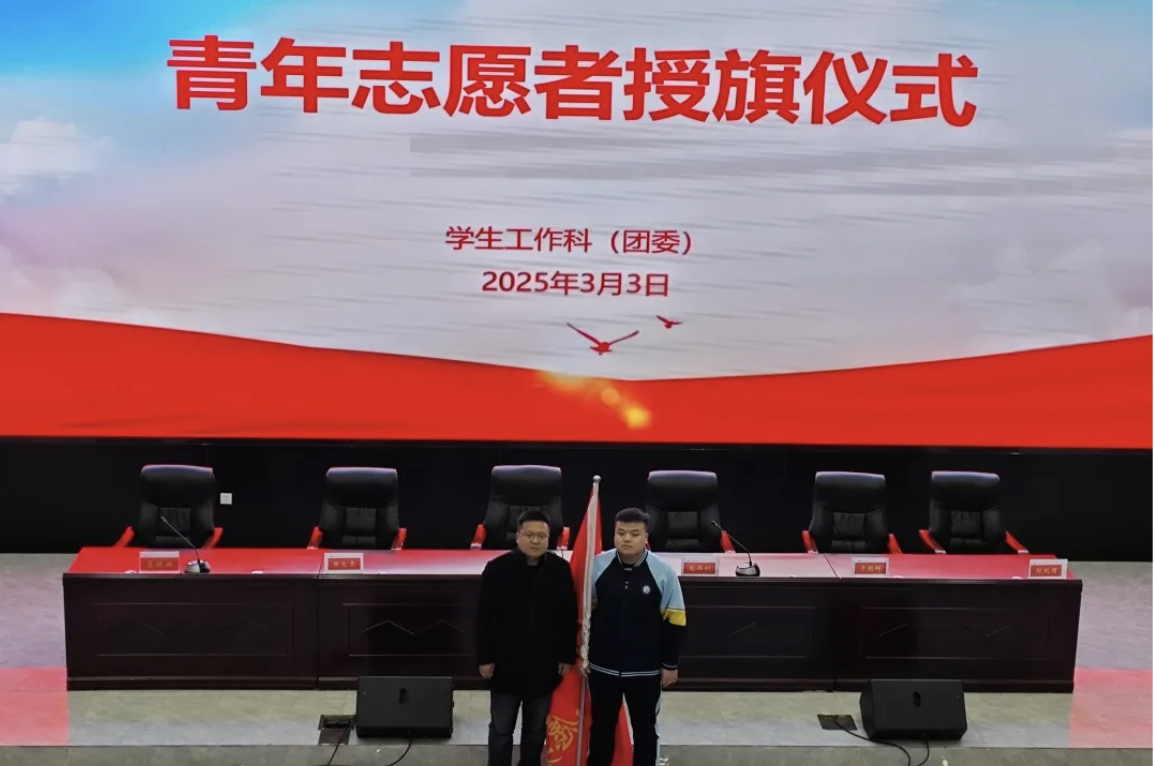 随后,学生工作科(团委)负责人宋利军为学生青年志愿者负责人段纪周授旗。授旗结束后,段纪周引领全体学生干部进行宣誓。学生们列队整齐,誓言铿锵有力,表达了对传承雷锋精神、做好志愿服务的决心。