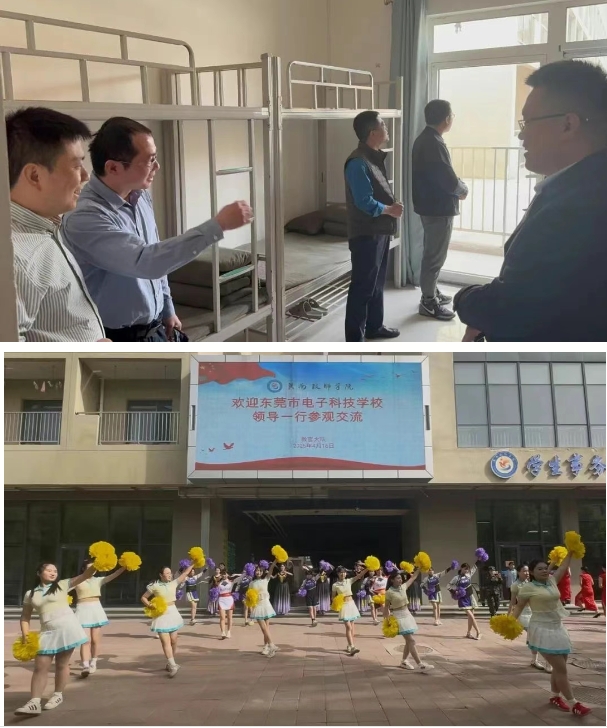 4月16日上午,广东省东莞市电子科技学校副校长李双龙一行10人到我院考察交流,学院党委书记许克亮热情接待来访嘉宾,学生工作科(团委)负责人、教官大队大队长、班主任代表参与活动。