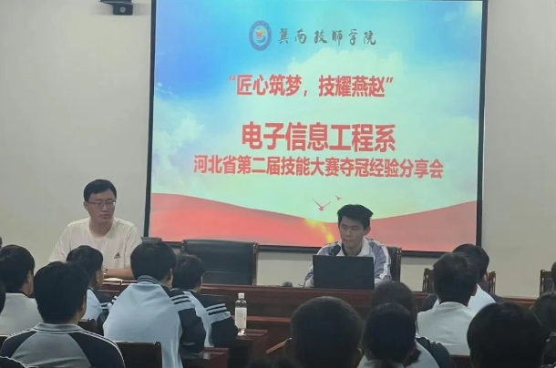 各系部举办了以“匠心筑梦,技耀燕赵”为主题的河北省第二届技能大赛金牌选手经验分享会,活动旨在弘扬工匠精神,树立技能成才的榜样。25名金牌选手备赛经验的精彩分享,充分展现学院教学成果,激发了学生的学习热情,营造了“比学赶超”的良好氛围。