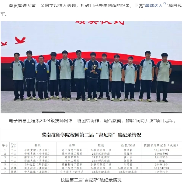 本届挑战赛,既有个人实力的巅峰对决,更有团队协作的默契配合。我院学子用行动诠释了永不言弃的体育精神和追求卓越的工匠精神。