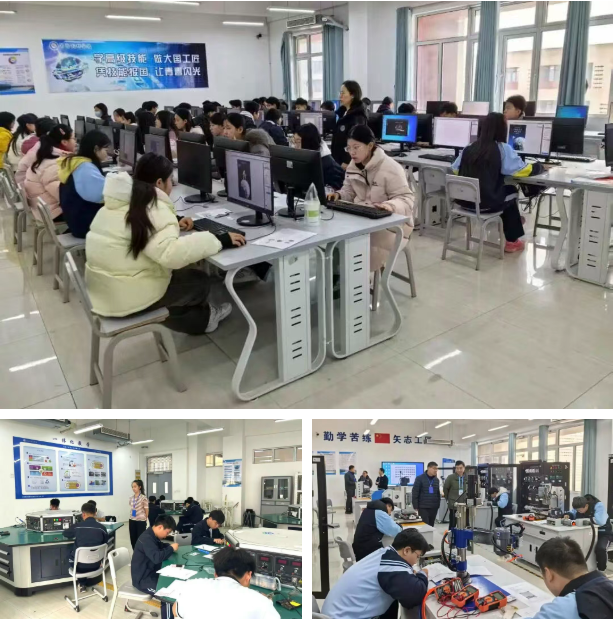 为保障认定工作有序开展,建立“考务统筹+系部落实+督导巡查”三级管理机制。每次认定前召开专题考务会,明确操作规范与考风考纪;标准化理论考场与技能实操考场同步启用,配齐数控车床、无人机、电工、装配钳工、汽车维修工等专业设备,确保多工种同步开考。考后及时公示成绩,优化取证流程,让考生“考得放心、拿证舒心”。