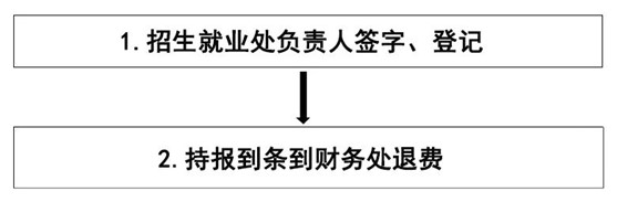 退费时须持学生报到条和学生本人身份证,先到招生就业处签字,再到财务处直接退费。流程如下: