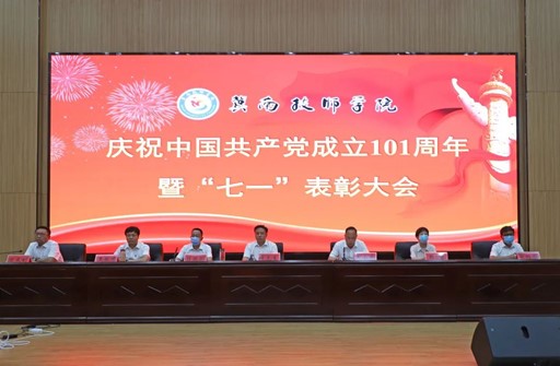 党委书记许克亮以《赓续红色血脉 凝聚奋进力量——以优异成绩向党的二十大献礼》为题发表讲话,首先代表学院党委,向为党的事业发展和学院建设发展做出重要贡献的全体党员致以真诚的节日问候!向受到表彰的先进基层党组织、优秀党务工作者、优秀共产党员表示热烈的祝贺!许书记在讲话中回顾了党的百年光辉历程和伟大成就,总结了建院以来学院取得的发展成果,面向全体党员、领导干部提出几点要求:一是落实全面从严治党责任,充分发挥基层党组织战斗堡垒作用,做好党风廉政建设工作,为实现学院发展目标提供坚强的政治保证。二是主动担当,大胆作为,充分发挥共产党员先锋模范作用,为学院的改革发展做出更大的贡献。三是改革创新,立德树人,切实抓好思想政治教育工作,提高我院思想政治教育的工作能力和水平。四是围绕中心,服务大局,助推“双优”建设上水平,在实际工作中实现自己的人生价值。今年是我院质量提升年,希望全体教职工认真总结工作,围绕教育教学和课程建设,学习专家先进理念,开阔眼界、理清思路、转变观念,创新教学方案,推动教育教学高质量发展。