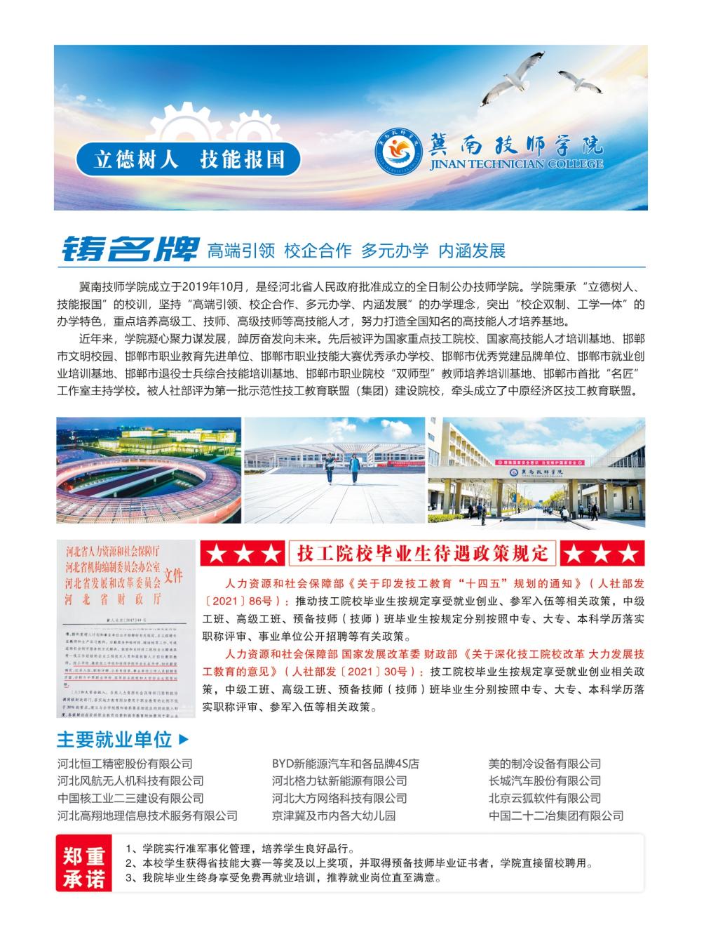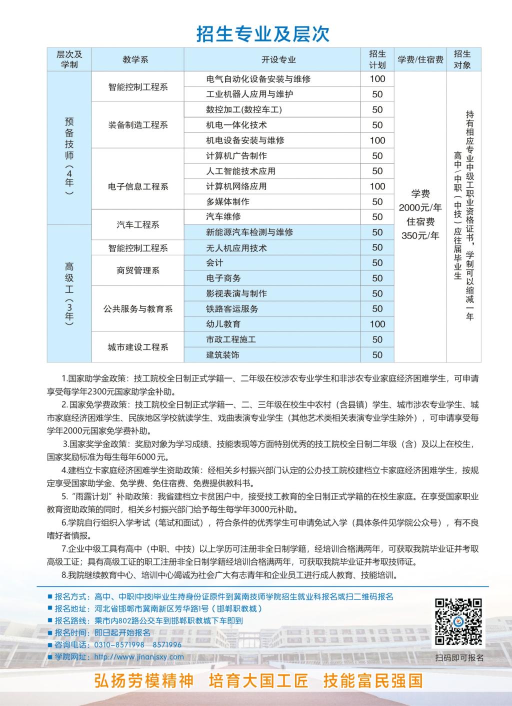 冀南技师学院2025招生简章 高中、中职(中技)毕业生、企业在岗中级及以上技工专用