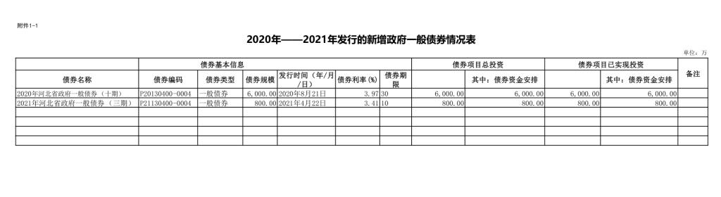 2020年—2021年发行的新增政府一般债券情况表