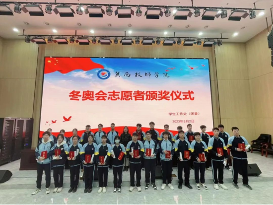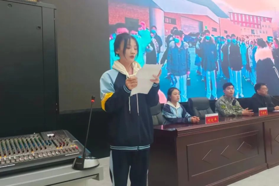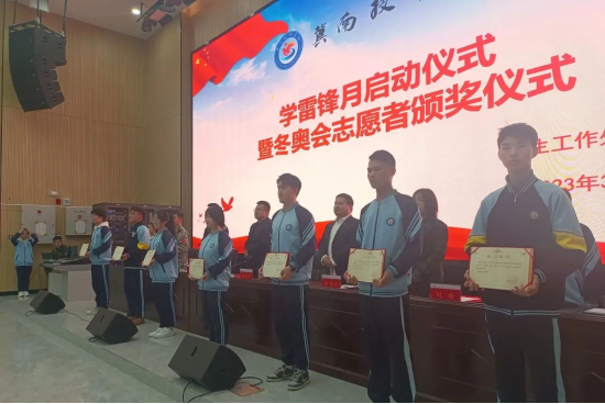 冬奥志愿者领队学生工作处刘晗老师宣读我院38名冬奥会志愿者名单,号召全院学生向冬奥志愿者学习,学习他们为国争光和践行雷锋精神。