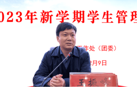 王振峰副院长就本年度学生管理工作提出要求:一是确保安全,多措并举,确保不发生重大学生安全事故。二是抓好班主任和学生干部队伍建设,班主任要以“匠心”工作室为依托,做优做强班主任培训;举办一场全体班主任参加的班主任能力大赛,选拔优秀班主任,积极参加省市班主任能力大赛,争取取得优异成绩;学生干部要以学生事务服务中心为平台,多岗位锻炼学生干部,建强学生干部队伍,提高学生自我管理水平。三是办好一场全体师生参与的运动会和高质量的元旦晚会,凝聚人心、展现形象。四是打造亮点项目,以准军事化管理和劳动教育为试点,提炼典型案例,全面提升班主任专业化水平和学生培养质量。