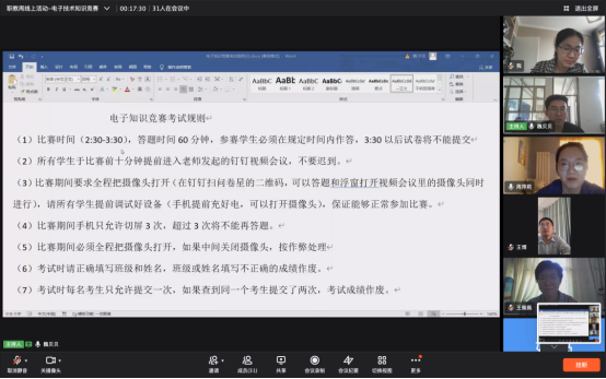 为大力宣传劳模精神、劳动精神、工匠精神,弘扬劳动光荣、技能宝贵、创造伟大的时代风尚,办好2022年职业教育活动周,充分展示智能制造系师生风采,5月23日,智能制造系开展职教周系列活动之“云上竞技”展示活动。此次竞赛分为四场,内容分别是:电子知识竞赛,电气画图、识图及排故知识竞赛,无人机知识竞赛,创新创业大赛展示活动和学生演讲竞赛。