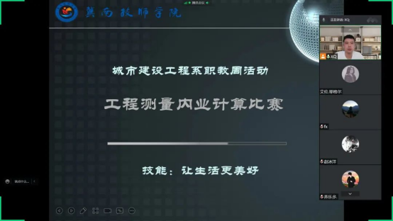 5月23日,城市建设工程系组织“云上竞技”活动启动仪式,阐释职教周的系列活动要求。启动仪式结束后,城市建设工程系共组织两场比赛,分别为建筑工程识图比赛和工程测量内业计算比赛。参赛人员包含建筑工程、工程造价、市政工程、工程测量四个专业的31名同学。两场比赛的赛题均以省级技能大赛为基础,促进学生在实训过程中对识图、测量相关知识学习兴趣,提高学生们识图和测量相关技能能力,为参加接下来的省、市技能大赛作充分准备。