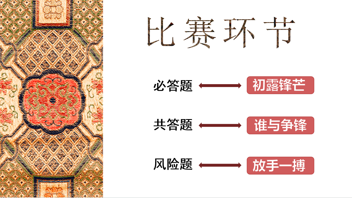 本次传统文化知识竞赛在妙语连珠的李琳老师的开场白中拉开帷幕。整个比赛共三个环节,第一个环节,初露锋芒(必答题),第二个环节谁与争锋(共答题),第三个环节,放手一搏(风险题)。