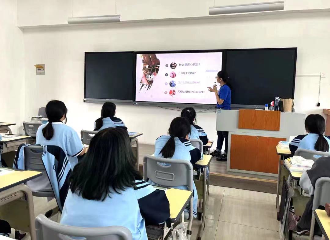 《开学第一课》以“匠心逐梦”为主题,教师们从“何为匠心筑梦“、“何为工匠精神”、“为什么弘扬工匠精神”以及“如何弘扬工匠精神”四个方面,结合习近平总书记对中国青年的重要讲话精神,以及优秀匠人典型事迹,为同学们展开深入浅出的讲解。