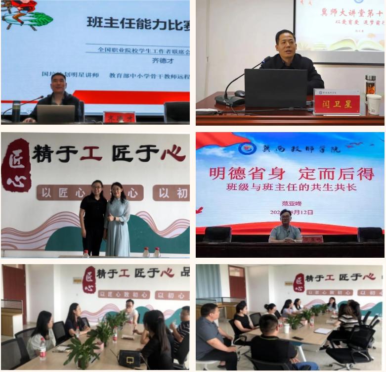 为全面深入了解班主任能力大赛要求,提升班主任专业化水平,学院多次邀请相关专家来院开展专题讲座与指导。期间特邀全国著名德育专家齐德才教授为选手做大赛指导和集训;邀请涿州职教中心闫卫星副校长、名班主任工作室主持人国赛获奖选手兰玉萍主任进行德育讲座;邀请河北经济管理学校名班主任工作室主持人范亚咚老师走进学院“冀师大讲堂”传经送宝;同时选派选手参加河北省中等职业学校班主任业务能力培训。通过“请进来,走出去”,不断提升班主任专业能力和素养,为参赛打下良好的理论基础。