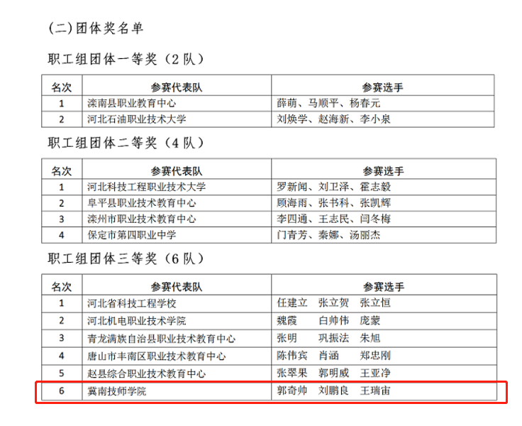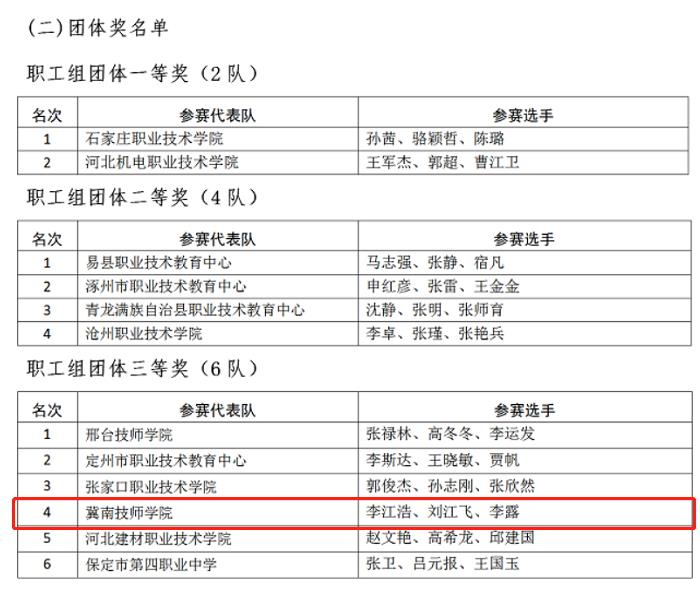 近日,由河北省工业和信息化厅、河北省人力资源和社会保障厅、河北省教育厅联合举办的2021年河北省电子信息职业技能大赛汽车虚拟仿真与应用项目于8月8日-11日在邢台举行,智能制造系李江浩、刘江飞、李露三位教师组成参赛队,经过实际操作比赛,取得团体三等奖的好成绩。汽车发动机检测与维修项目于8月11日-13日在唐山举行,王瑞宙、刘鹏良、郭奇帅三位教师组成参赛队,取得团体三等奖的好成绩。