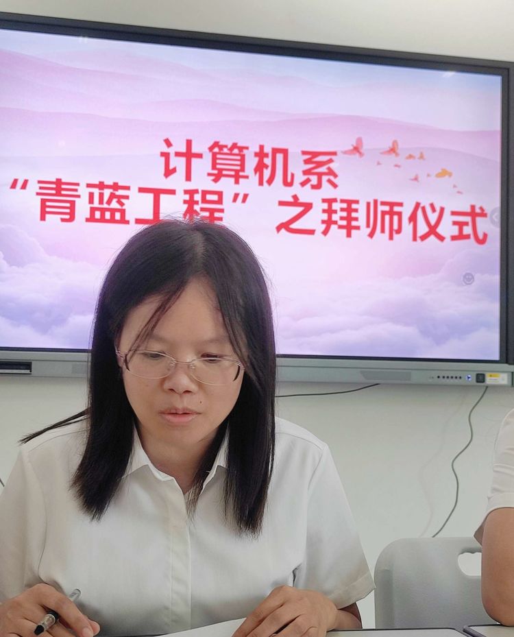 计算机系负责人王潇主任宣读《计算机系“青蓝工程”帮扶方案》和师徒结对名单。