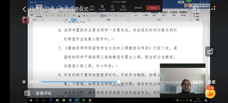 疫情打乱了我们开学的脚步,但它阻挡不了我们追梦的脚步。2022年10月11日下午三点,冀南技师学院计算机系举办了一场特殊的开班典礼,隔着屏幕面对面,在特殊时期给予学生们网课开班“仪式感”。参会人员有职教城计算机系全体任教教师、所有班主任和33个班级的所有学生。