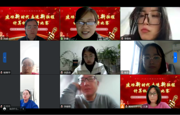 为进一步开展爱党爱国爱社会主义教育活动,有效激发新时代青年教师奋斗激情和创造活力,在实践中淬炼过硬本领,厚植担当精神,不负时代召唤,勇挑重担,在教书育人中贡献青春力量。11月1日下午4:30,冀南技师学院计算机系开展了“建功新时代 奋进新征程”线上青年教师演讲比赛。参会人员有计算机全体教师,会议由尚硕老师主持。
