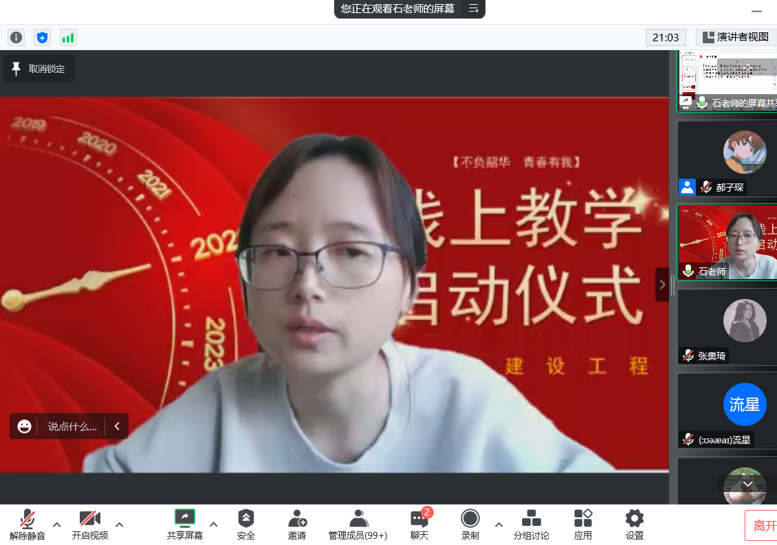 启动仪式上,郝子琛主任首先强调要端正态度,重视线上学习形式,要求同学们面对疫情时,要饱含责任心,深存敬畏心,要上好课,读好书,保质保量完成线上学习。