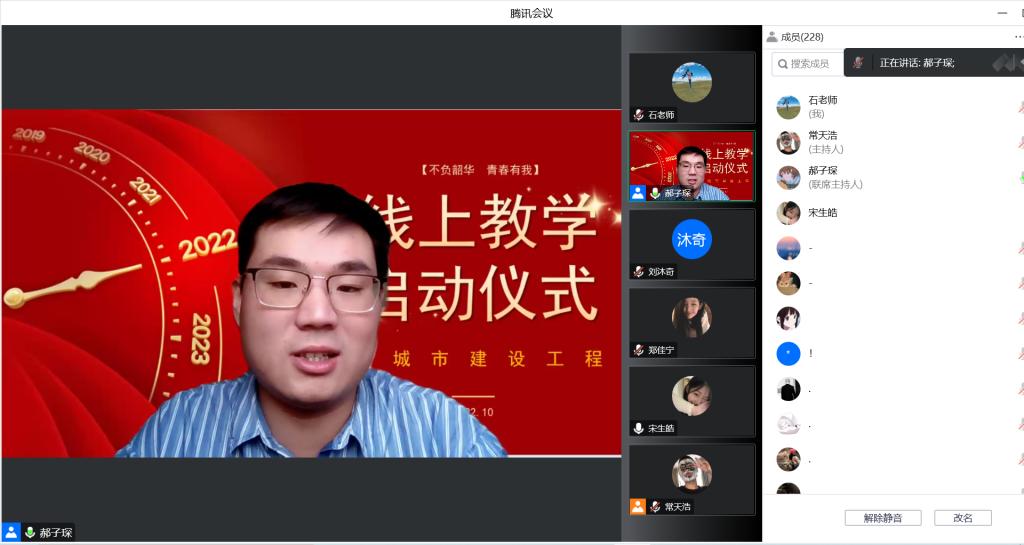 为了让同学们高度重视线上学习形式,保证线上学习质量,按时完成学习任务,真正实现防疫不停课,居家不停学目标。城市建设工程系于10月11日下午3点,举行线上教学启动仪式。本次启动仪式由郝子琛主持,系部主任石萌瑶、各班班主任和城建系全体学生参加了启动仪式。