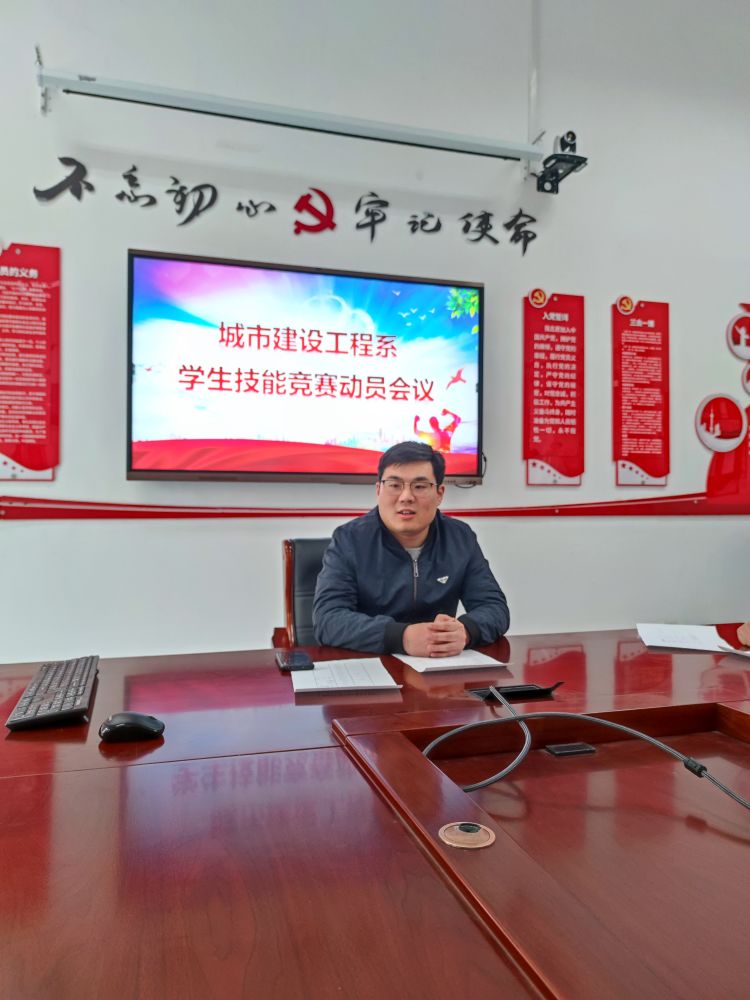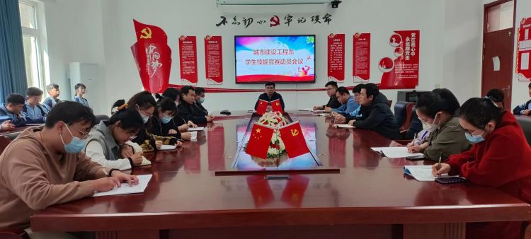 为进一步提高城市建设工程系学生技能竞赛队伍素质和水平,营造积极、拼搏的比赛训练氛围,全力以赴做好参加2023年省市职业院校技能竞赛工作,3月9日下午,城市建设工程系在D2-109召开学生技能竞赛动员及调度会议。会议由刘沐奇老师主持,城建系支部书记郝子琛、全体指导老师及参赛学生代表参加会议。