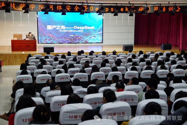 为促进人工智能与教育教学深度融合,探索未来教育创新之路,切实提升师生 AI 应用技能,2月28日,我院举办网络安全暨DeepSeek基础应用培训会,特邀菏泽市网络安全专家王诏亮担任主讲。培训会由院党委副书记阎齐明同志主持,学院领导班子成员、全体教师及部分学生代表共计400余人参加培训。