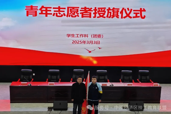 随后,学生工作科(团委)负责人宋利军为学生青年志愿者负责人段纪周授旗。授旗结束后,段纪周引领全体学生干部进行宣誓。同学们列队整齐,誓言铿锵有力,表达了对传承雷锋精神、做好志愿服务的决心。