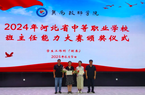 比赛最后,冀南技师学院副院长王振峰,学生工作科(团委)负责人宋利军为2024年河北省班主任能力大赛获奖班主任颁奖,即为去年班主任能力大赛画上圆满的句号,又吹响了今年省赛争第一,创唯一的号角。