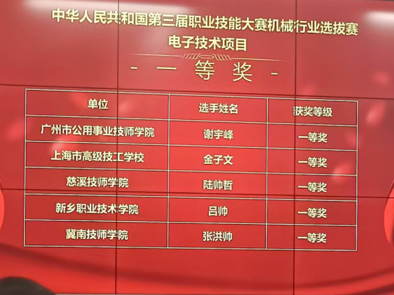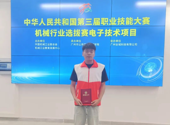 6月9日至6月13日,电子技术选拔赛在广州市公用事业技师学院举办。来自全国11个省、直辖市的16支代表队参加,电子技术赛项围绕电路硬件设计、嵌入式系统编程,电子产品装调三大核心任务展开竞赛。项目深度融合了新一代电子信息产业“硬件开发-软件编程-产品装调维修”的全流程实践,要求选手不仅掌握模拟和数字电路设计、单片机编程、芯片应用等核心技术,还须具备电路解析、故障诊断及客户需求转化等综合能力。教师贾晓星指导23技师电气一班学生张洪帅获得一等奖的好成绩。