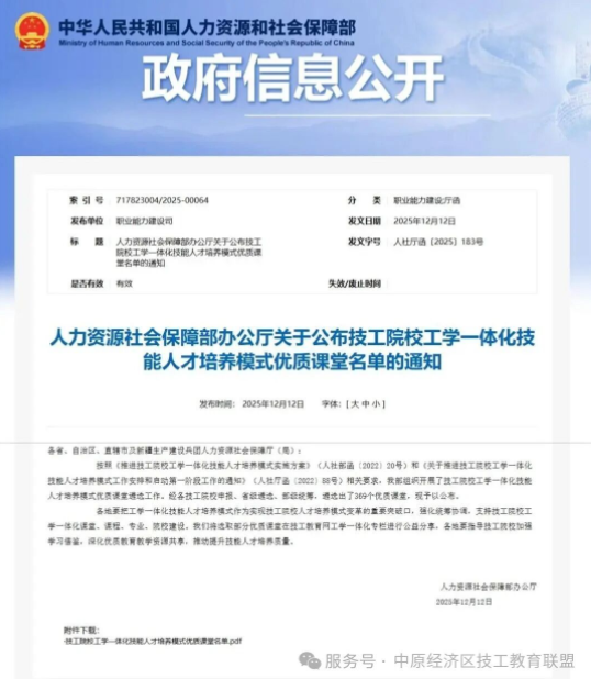 近日,人力资源社会保障部办公厅发布《关于公布技工院校工学一体化技能人才培养模式优质课堂名单的通知》(人社厅函〔2025〕183号),冀南技师学院数控加工(数控车工)专业申报的“压缩机台阶轴数控车床加工”课堂,凭借其“贴近产业、任务驱动、教学做一体”的鲜明特色,在院校申报、省级遴选和部级统筹的层层评选中脱颖而出,成功入选全国369个国家级优质课堂之一,获得了专家组的一致认可,展现了学院在推进工学一体化教学改革方面的扎实成效与创新实力。