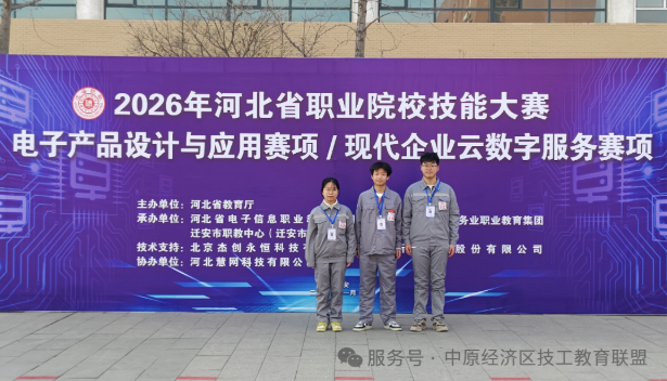 近日,由河北省教育厅主办,河北省电子信息职业教育集团与迁安市职业技术教育中心共同承办的2026年河北省职业院校技能大赛(中职组)“电子产品设计与应用”赛项在河北迁安落下帷幕。我校“3+4”管理部学生李沐鸿、赵紫怡、陈梓旭在指导教师王鑫、杨倩倩的悉心指导下荣获一等奖。本次大赛共吸引全省75支参赛队伍同台竞技,重点考查选手在电路设计与仿真、电子产品焊接与调试、单片机程序设计等方面的专业素养与综合实践能力。比...