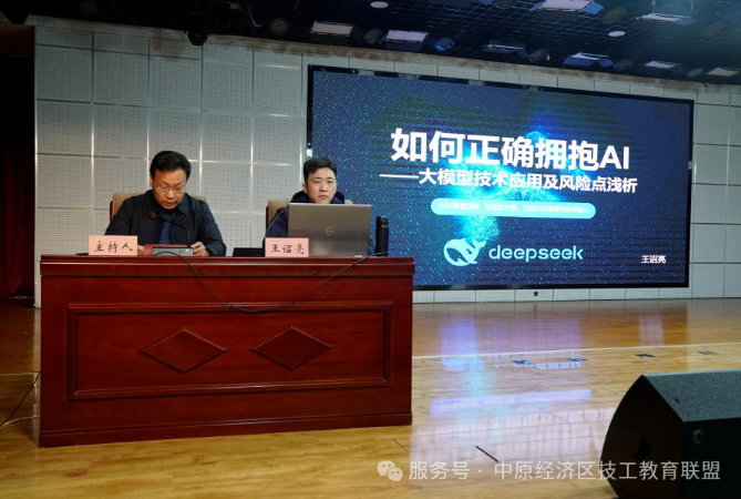 为促进人工智能与教育教学深度融合,探索未来教育创新之路,切实提升师生 AI 应用技能,2月28日,我院举办网络安全暨DeepSeek基础应用培训会,特邀菏泽市网络安全专家王诏亮担任主讲。培训会由院党委副书记阎齐明同志主持,学院领导班子成员、全体教师及部分学生代表共计400余人参加培训。王诏亮以《如何正确拥抱AI—大模型技术应用及风险点浅析》为主题,围绕人工智能发展简史、国产DeepSeek平台、大模型应用风险规避及DeepSee...