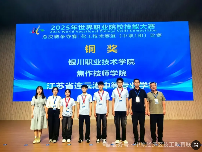 8月24日至28日,备受瞩目的2025年世界职业院校技能大赛总决赛争夺赛化工技术赛道(中职组)赛事,在山东省淄博市工业学校火热开赛。作为河南省的代表队伍,焦作技师学院化工工艺专业的许力轩、王宇祥、王佳炎、李金轩4名选手,在王传伟、张坤两位老师的精心指导下,与来自全国的31支顶尖参赛队伍同台竞技、激烈角逐。最终,团队凭借扎实的专业技能和稳定的临场发挥成功突围,摘得该赛道铜奖,为学院赢得了荣誉!本次化工技术赛...