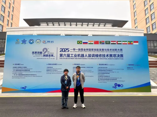 在上海举办的2025年第六届“一带一路暨金砖国家技能发展与技术创新大赛”工业机器人装调维修技术赛项决赛中,我院师生表现卓越,斩获多项荣誉,并成功晋级2026年摩洛哥北非国际赛,并将代表中国角逐国际赛场。此次大赛作为兼具国际视野与专业深度的顶级技能赛事,吸引了全球152名选手参赛。经过激烈角逐,我院学生魏亦程荣获学生组一等奖,并成功晋级2026年摩洛哥北非国际赛;教师刘爽荣获职工组二等奖。同时,我院还获评学生组...