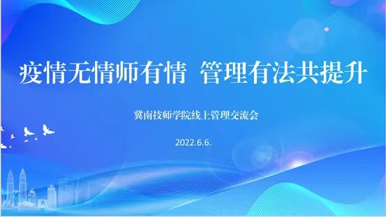 为进一步提高线上教育教学期间班主任管理能力,增强班主任综合素质,提高专业化水平,6月6日下午,学生工作处(团委)举办了以《疫情无情师有情,管理有法共提升》为主题的班主任线上管理经验交流会。本次会议由学生工作处(团委)负责人宋利军主持,王振峰副院长、各系部学管主任、学生工作处人员、全体班主任和教官大队参加会议。一、经验分享本次会议以腾讯会议的方式召开,6位来自不同系部的优秀班主任代表分享了线上管理智...