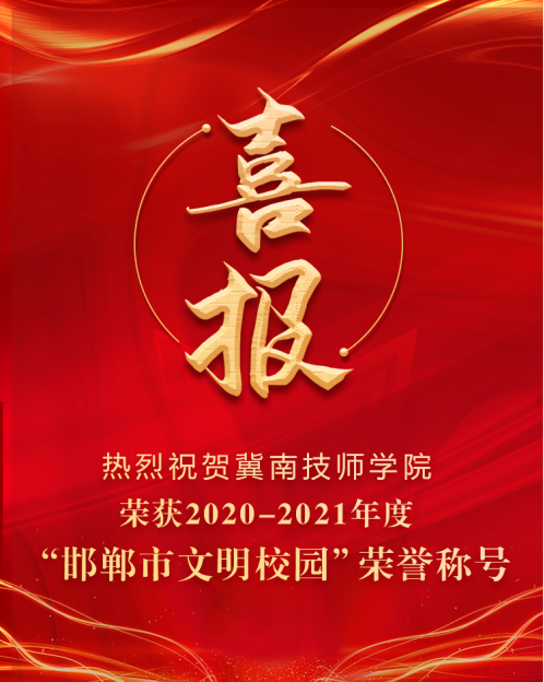 近日,中共邯郸市委、邯郸市人民政府下发了《关于2020-2021年度邯郸市文明单位、文明家庭、文明市民评选情况的通报》(邯文〔2022〕7号),冀南技师学院荣获2020-2021年度“邯郸市文明校园”称号。在邯郸市委、市政府的坚强领导下,我院以习近平新时代中国特色社会主义思想为指导,深入学习贯彻党的十九大和历届全会精神,聚焦立德树人根本任务,把精神文明建设摆在院工作的重要位置。通过准军事化管理的有效实施,大力弘扬社会主...