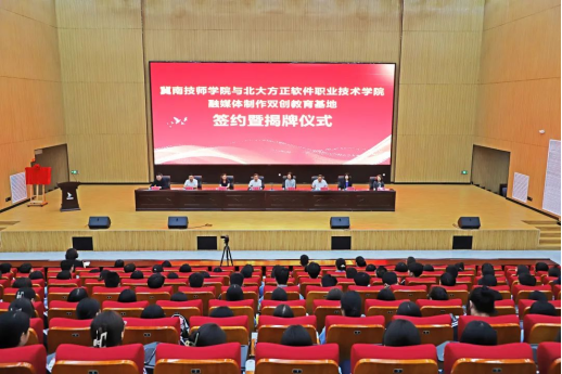 5月19日上午,我院与北京北大方正软件职业技术学院融媒体制作双创教育基地签约揭牌仪式在学术交流中心举行。学院党委书记许克亮,院长王小生,党委委员张学义及北京北大方正软件职业技术学院校长潘秀峰,副校长马克非等人出席签约仪式。学院继续教育中心、党政办公室等工作人员,部分预备技师班学生参加仪式。 院长王小生主持会议,并对我院预备技师学生学习状况和亟待解决的学历提升问题提出意见和建议。 学院党委书记许克亮对...